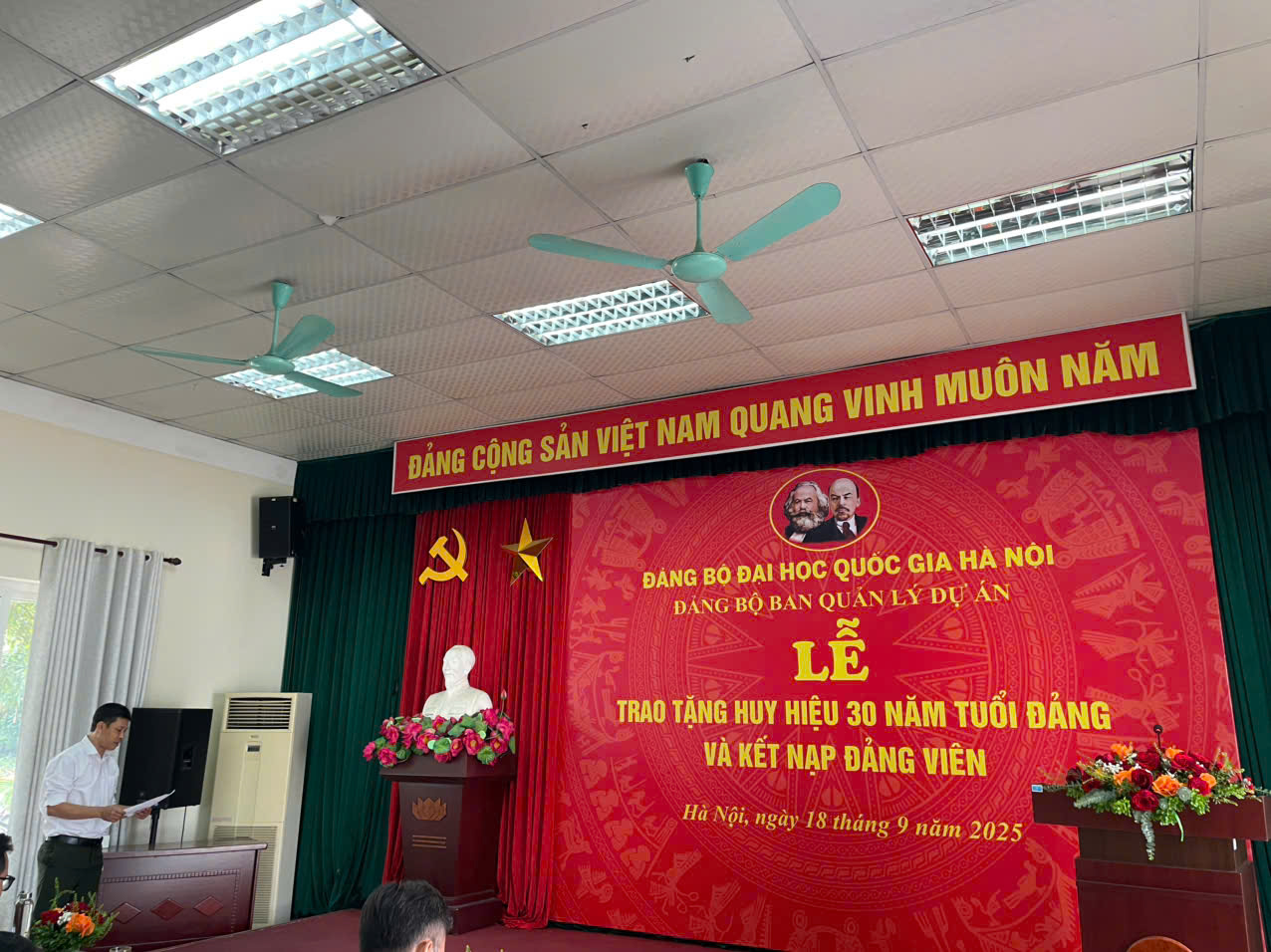 Cũng trong ngày 18/9/2025, Chi bộ phòng Tổng hợp trực thuộc Đảng bộ Ban QLDA đã trang trọng tổ chức Lễ kết nạp đảng viên cho quần chúng ưu tú Chu Văn Cừ.